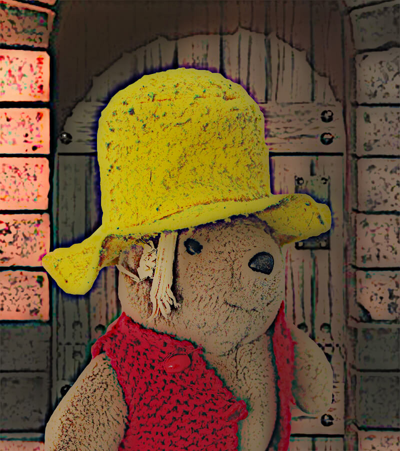 De ouwe gele vraagt of ze nog wat anders nodig hebben en pad blauw zegt dat ze zijn raad nodig hebben. 'We hebben rijst geprobeerd zoals je had gezegd en ook sneeuw maar het werkt allemaal niet! De rijst is veel te plakkerig en de sneeuw smelt. Daar kunnen we pad blauw niet mee helpen.' Dan vertellen ze over hun ontmoeting met de cavia's en het idee om zaagsel als vulling te gebruiken. 'Heb je het bij je?' vraagt de ouwe gele, 'dan kan ik er even aan voelen.' Pad blauw overhandigt het zakje met zaagsel aan de ouwe gele, die op zijn beurt probeert of hij zijn hoed er mee kan vullen. Het lijkt aardig te gaan: de hoed krijgt zijn vorm snel weer terug. Als de ouwe gele zijn hoed weer opzet schreeuwt hij het uit. Snel trekt hij zijn hoed van zijn hoofd, maar hij blijft schreeuwen.